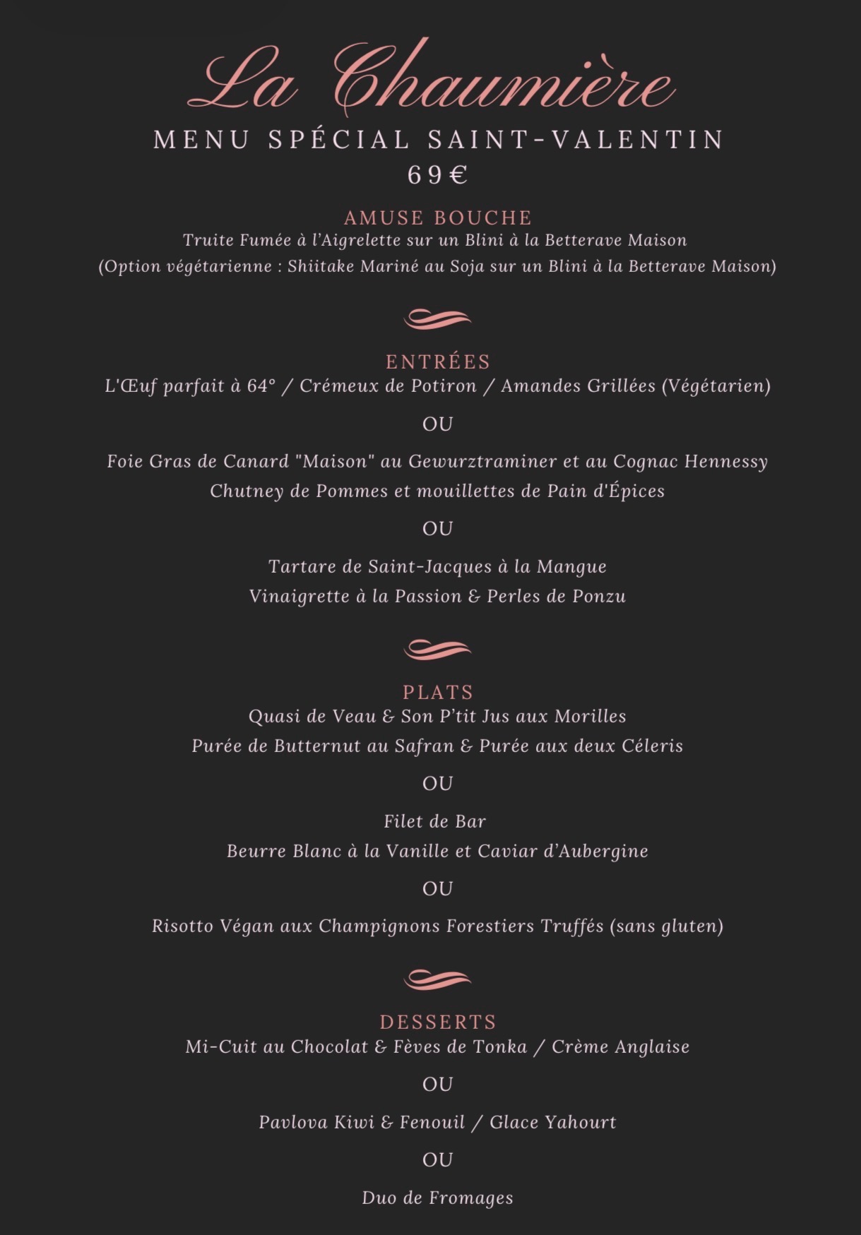 À l’occasion de la Saint-Valentin, nous vous proposons un menu spécial disponible uniquement le 14 février.